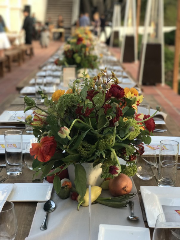 The evening of celebrations took place at the historic Junipero Serra Museum in San Diego. The museum set on a hill gave us incredible views of the sunset going down over the pacific, as well as some gusts of wind (as somewhat captured in the photo of me above). We were greeted with our drink of choice, the sounds of The Verigolds band playing, and beautiful decor using the ingredients of the salsa, and twinkling lights strung all around the stunning Spanish inspired museum.